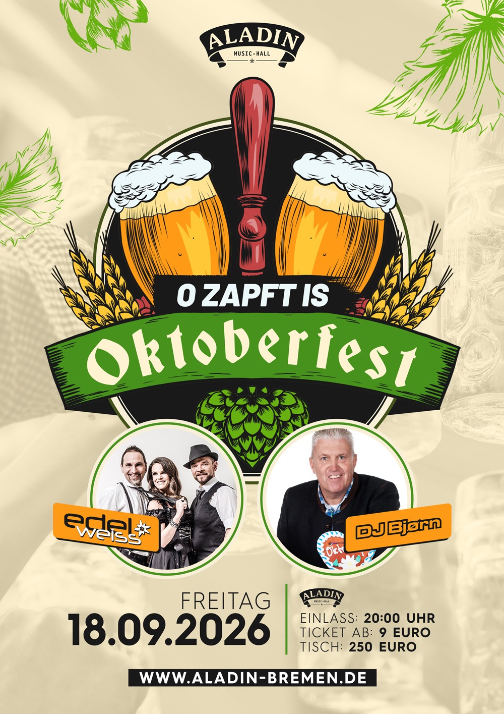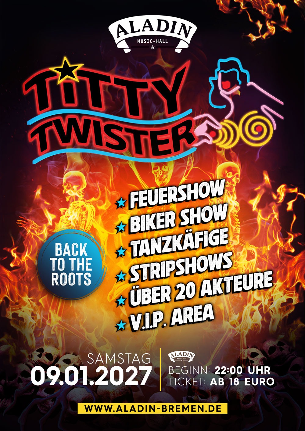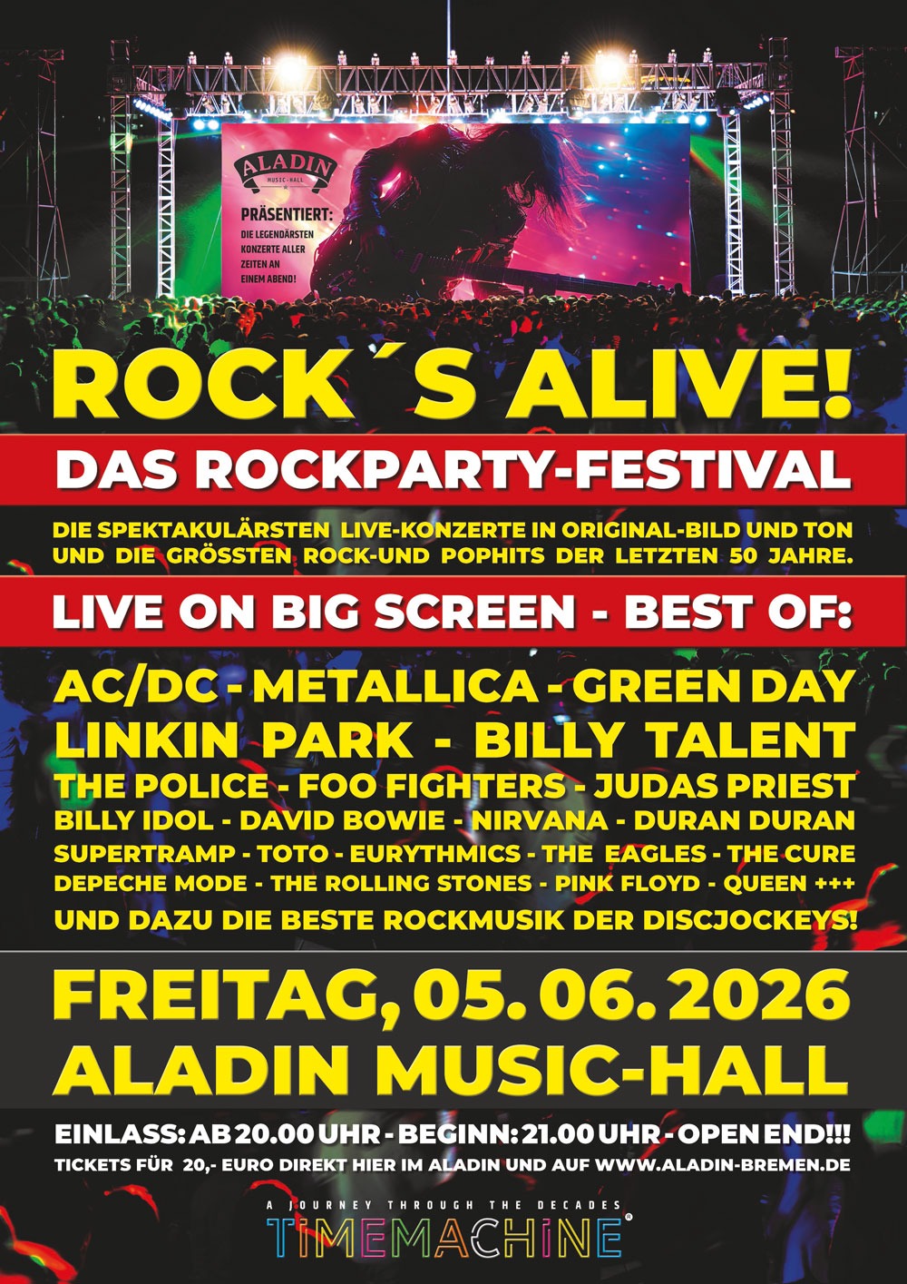 FilterkategorienAlleEventsKonzerte Events Aladin & Tivoli Rockin‘ Kohlfahrt 2026 Sa.. 31 Januar 2026 Konzerte Aladin Alexander Eder & Band Do.. 05 Februar 2026 Events Aladin & Tivoli Rockin‘ Kohlfahrt 2026 Sa.. 07 Februar 2026 Events,Konzerte Aladin & Tivoli SUPER BOWL WATCH NIGHT So.. 08 Februar 2026 Events Aladin OLD BUT GOLD Fr.. 13 Februar 2026 Events Aladin & Tivoli Rockin‘ Kohlfahrt 2026 Sa.. 14 Februar 2026 Events Aladin & Tivoli Rockin‘ Kohlfahrt 2026 Fr.. 20 Februar 2026 Events Aladin & Tivoli Rockin‘ Kohlfahrt 2026 Sa.. 21 Februar 2026 Events Aladin Sonntagstanz im Aladin So.. 22 Februar 2026 Events Aladin & Tivoli Rockin‘ Kohlfahrt 2026 Fr.. 27 Februar 2026 Events Aladin & Tivoli Rockin‘ Kohlfahrt 2026 Sa.. 28 Februar 2026 Konzerte Aladin Brothers of Metal So.. 01 März 2026 Events Aladin Mama geht tanzen Fr.. 06 März 2026 Events Aladin & Tivoli Rockin‘ Kohlfahrt 2026 Sa.. 07 März 2026 Events Aladin & Tivoli HÜTTENGAUDI 2026 Sa.. 14 März 2026 Konzerte Aladin Julian Sommer Fr.. 20 März 2026 Konzerte Tivoli Willkuer Sa.. 21 März 2026 Events Aladin One Step Harder Sa.. 21 März 2026 Konzerte Tivoli DIO alive Sa.. 28 März 2026 Events Aladin Hard Rock Nacht Sa.. 04 April 2026 Events Tivoli DARK EASTER Sa.. 04 April 2026 Events Aladin Ü40 PARTY Sa.. 11 April 2026 Events Aladin & Tivoli KLANGWELTEN Sa.. 18 April 2026 Events Aladin Elternsprechtag - die FRÜHPARTY im Aladin! Sa.. 25 April 2026 Events,Konzerte Aladin K-POP SHOWDOWN Fr.. 29 Mai 2026 Events,Konzerte Aladin Aladin Rock`s Alive Fr.. 05 Juni 2026 Konzerte Aladin The plot in you Mo.. 22 Juni 2026 Events,Konzerte Aladin & Tivoli OKTOBERFEST Fr.. 18 September 2026 Konzerte Aladin Ivo Martin Fr.. 16 Oktober 2026 Events Aladin & Tivoli House of Horror Fr.. 30 Oktober 2026 Konzerte Aladin Perkele Fr.. 27 November 2026 Konzerte Aladin Torfrock Fr.. 04 Dezember 2026 Konzerte Aladin FEUERENGEL Sa.. 12 Dezember 2026 Konzerte Aladin DORO + Special Guest Di.. 15 Dezember 2026 Events Aladin & Tivoli Hard Rock Nacht Fr.. 25 Dezember 2026 Events Aladin & Tivoli Dark Christmas Special! Fr.. 25 Dezember 2026 Events Aladin & Tivoli Titty Twister Sa.. 09 Januar 2027 Konzerte Aladin ORDEN OGAN Mo.. 11 Januar 2027